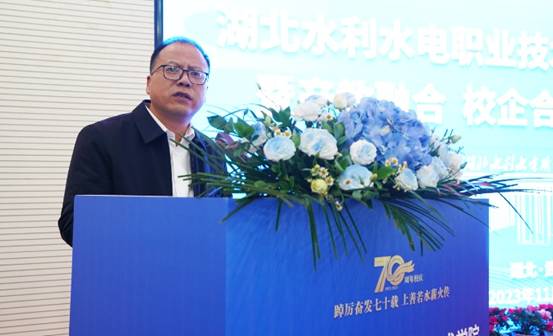 湖北省水利厅党组成员、副厅长焦泰文在会上指出,习近平总书记在党的二十大报告中,首次把教育、科技、人才进行“三位一体”统筹安排、一体部署,极具战略意义和深远影响。当前,湖北省水利厅正在着力加快构建“荆楚安澜”现代水网,以有效解决湖北水利发展不平衡不充分问题,湖北还将积极谋划数字孪生流域建设,全面推进对物理流域全要素和水利治理管理全过程进行数字化映射、智能化模拟,切实提升水利行业智慧化水平。要实现这些发展,需要培养数以万计的高素质技术技能型人才来支撑。他希望学院以办学70周年为契机,全面贯彻党的教育方针,认真总结办学经验,创新人才培养模式,深入推动产教融合、校企合作、科教融汇,全面提高人才培养质量,努力建设特色鲜明的高水平院校。