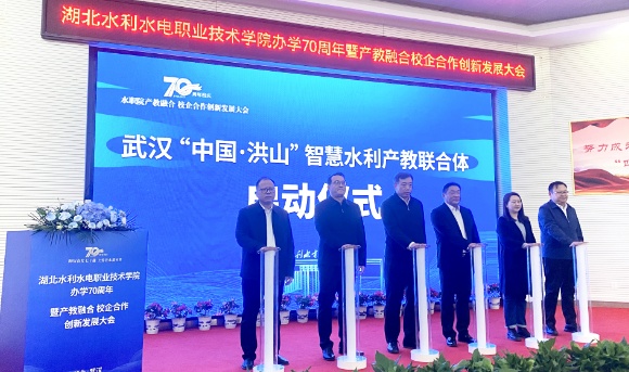 随后,在热烈的掌声中,领导与嘉宾共同按下启动键,武汉“中国·洪山”智慧水利产教联合体正式成立。
