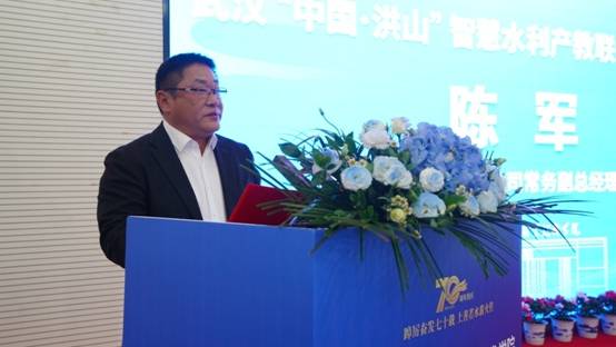 武汉碧水集团有限公司常务副总经理陈军在致辞中表示,武汉碧水集团有幸作为“武汉·中国洪山”智慧水利产教联合体的牵头企业,将认真贯彻习近平生态文明思想和习近平总书记关于长江经济带发展重要论述、重要指示批示精神,加强产教融合平台建设,着力推动科技自立自强,构建协同育人的新格局。