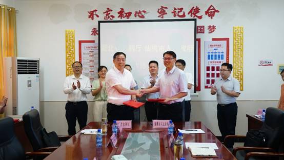 焦泰文、雷荡分别代表湖北省水利厅和仙桃市人民政府签署了战略合作协议。
