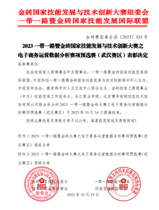 10月14日,“2023一带一路暨金砖国家技能发展与技术创新大赛·电子商务数据分析赛项武汉赛区”在长江职院鄂州葛店校区举行。beat365官网商贸管理系2022级电子商务专业学生代表队从74支代表队脱颖而出,荣获高职组三等奖。