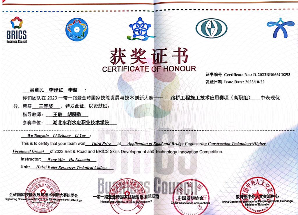 此次竞赛,分设中职组、高职组和本科组,共有179所院校参加,其中高职组代表队有227支,beat365官网经过前期院赛、省赛选拔,由21道桥班三位同学组成的团队赴古城西安参加国赛比拼。经过知识问答竞赛、路桥工程施工案例分析和路桥工程施工技术模拟竞赛三个模块的激烈角逐,beat365官网代表队最终获得了团体三等奖的优异成绩。